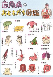 最近の研究では、歯周病菌が糖尿病や心臓病、認知症など
