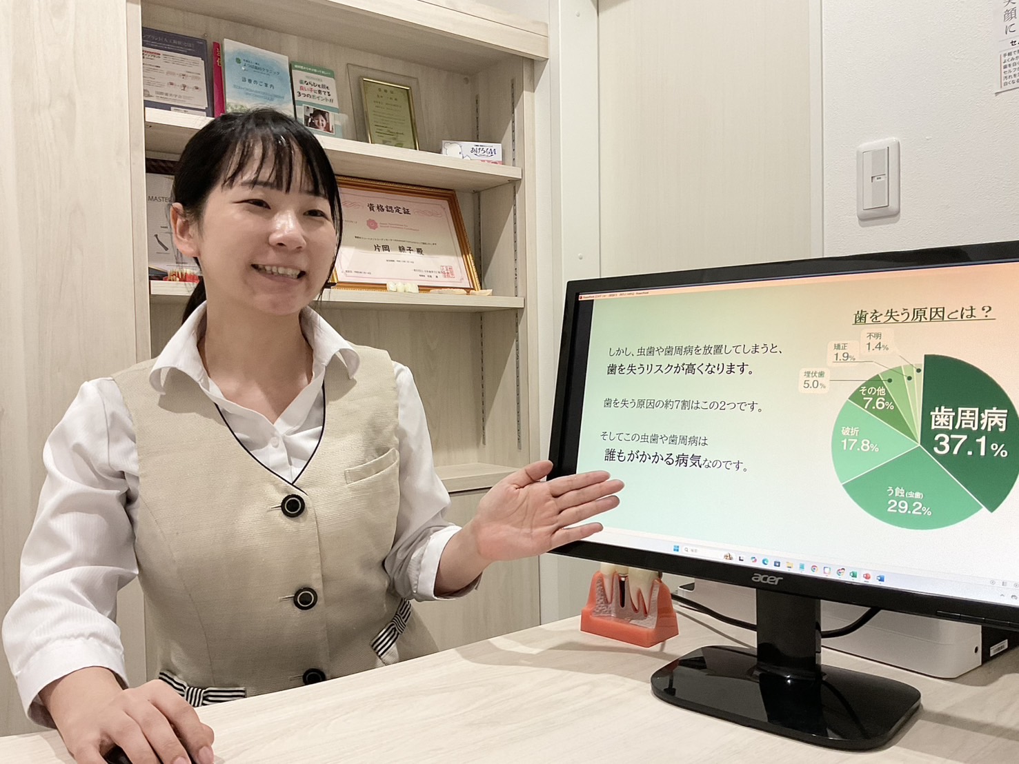 歯科衛生士を患者様毎に担当制にすることで口腔内の細かい変化に対応でき、日頃の生活環境やお悩みにも深く寄り添うメンテナンスが可能になります。常に同じ水準で口腔内の良好な環境を保つために、歯科衛生士の担当制は重要な事だと考えています。